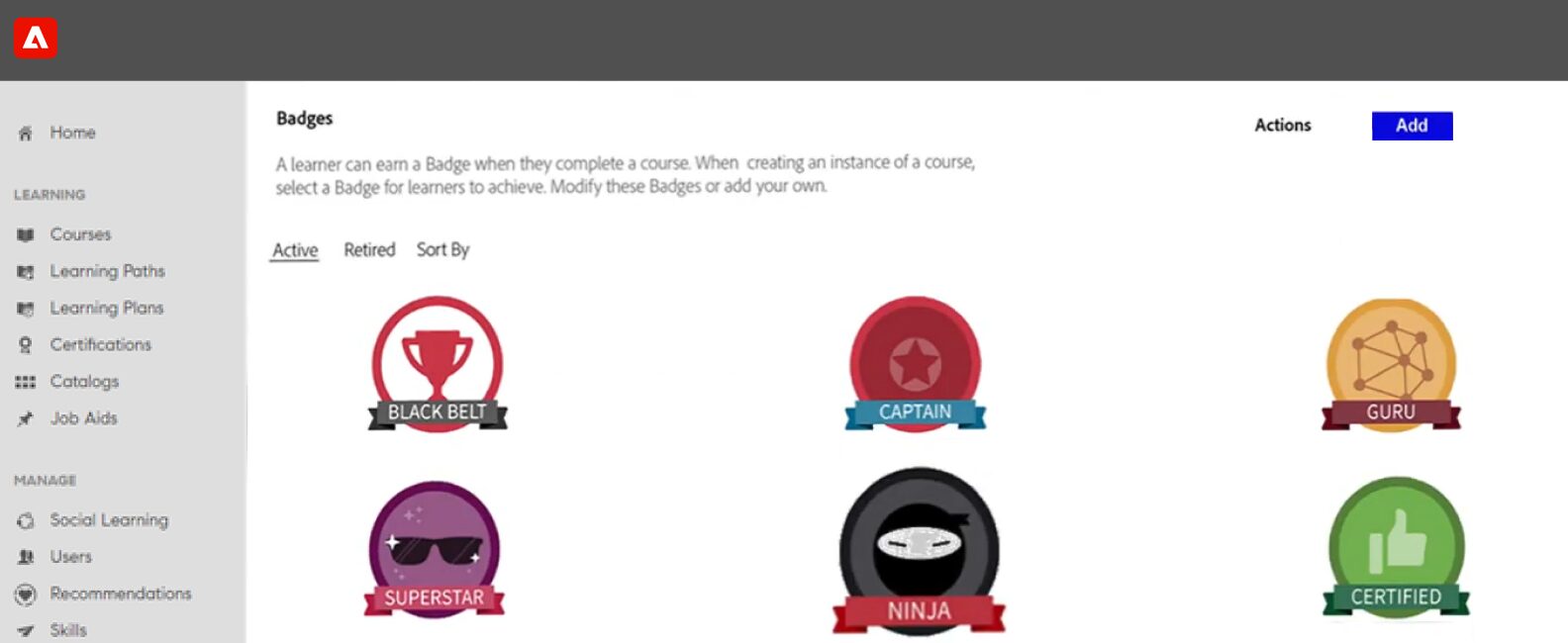 5. Adobe Learning ManagerPoints, badges, leaderboards, certificates