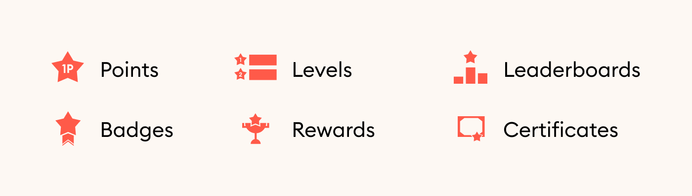 Most often, LMS gamification elements are points, badges, leaderboards, and certificates; and sometimes levels and rewards as well: