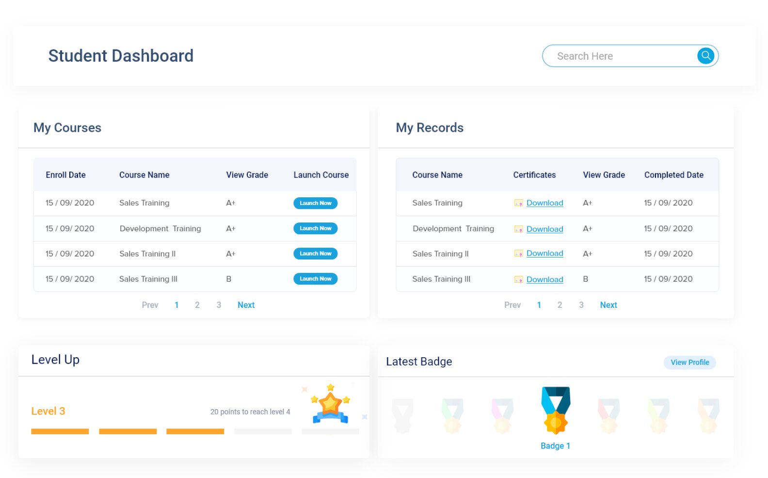 Certificates of completion are an official way to reward learners’ achievements. They can be awarded for completing courses, concluding certification programs, or passing exams. Besides increasing motivation, certificates also add value to learners’ resumes because they can be easily shared on social media or attached to professional portfolios.